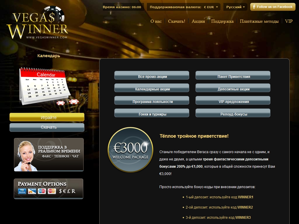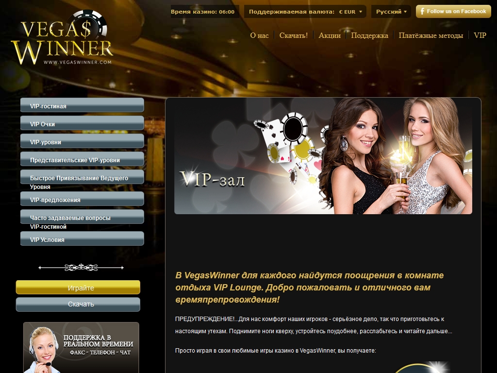 У «Вегас Виннер» есть страница на Facebook. Присоединившись к ней, вы всегда будете в курсе последних предложений и сможете принимать участие в специальных программах. Также имеет смысл подписаться на новостную рассылку по электронной почте.