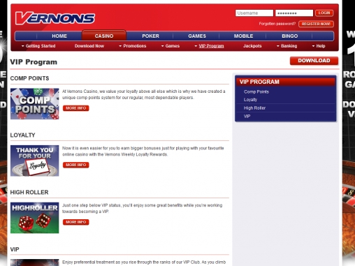 Кроме того, в Vernons Casino действует программа лояльности с несколькими уровнями. Особые акции действуют для VIP игроков.