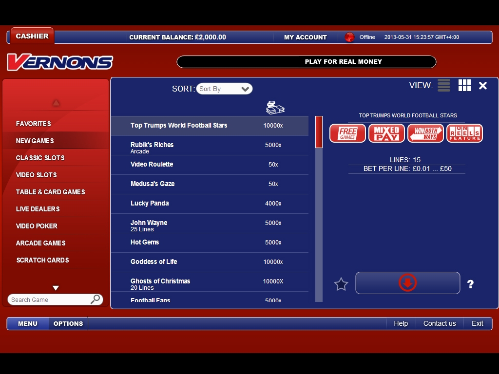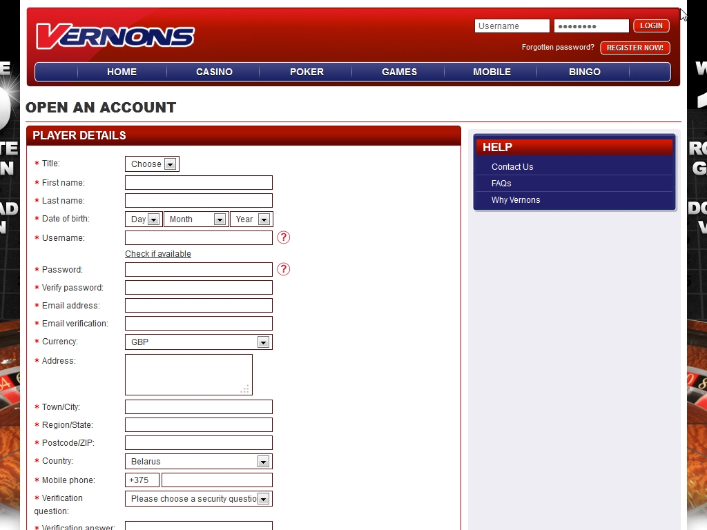 Играть в Vernons Casino можно в фунтах стерлингов, евро, долларах США и Канады.
