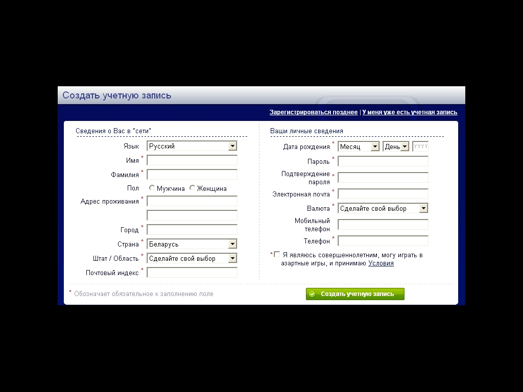 Выводить выигрыши можно через кредитные карты Visa, платежные карты Visa Electron, а также Moneybookers, ECO, Click2Pay, NETeller, Clickandbuy, Entropay и прямого банковского перевода.