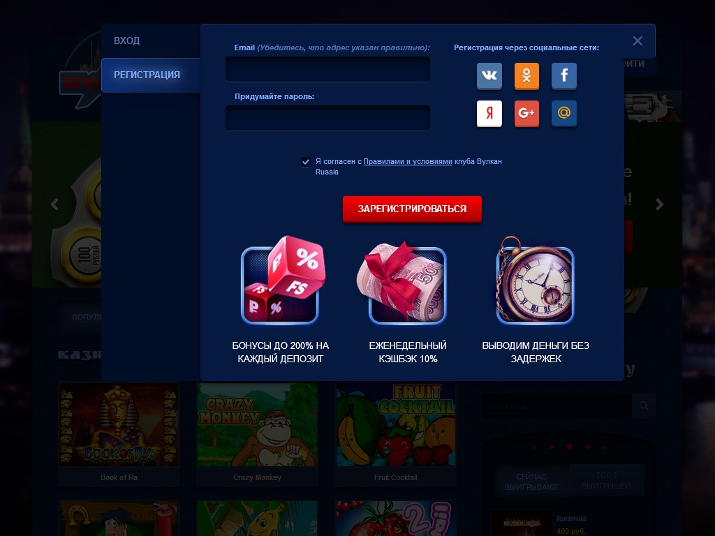 В «Вулкан Россия» игра ведется на рубли.