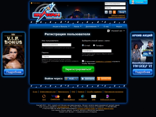 В правилах клуба «Вулкан» указано, что он осуществляет деятельность на территории Коста-Рики в соответствии с законодательством этой страны. Сайт доступен только на русском языке. Для игры не нужно скачивать программу, потому что заведение работает во флеш-режиме.