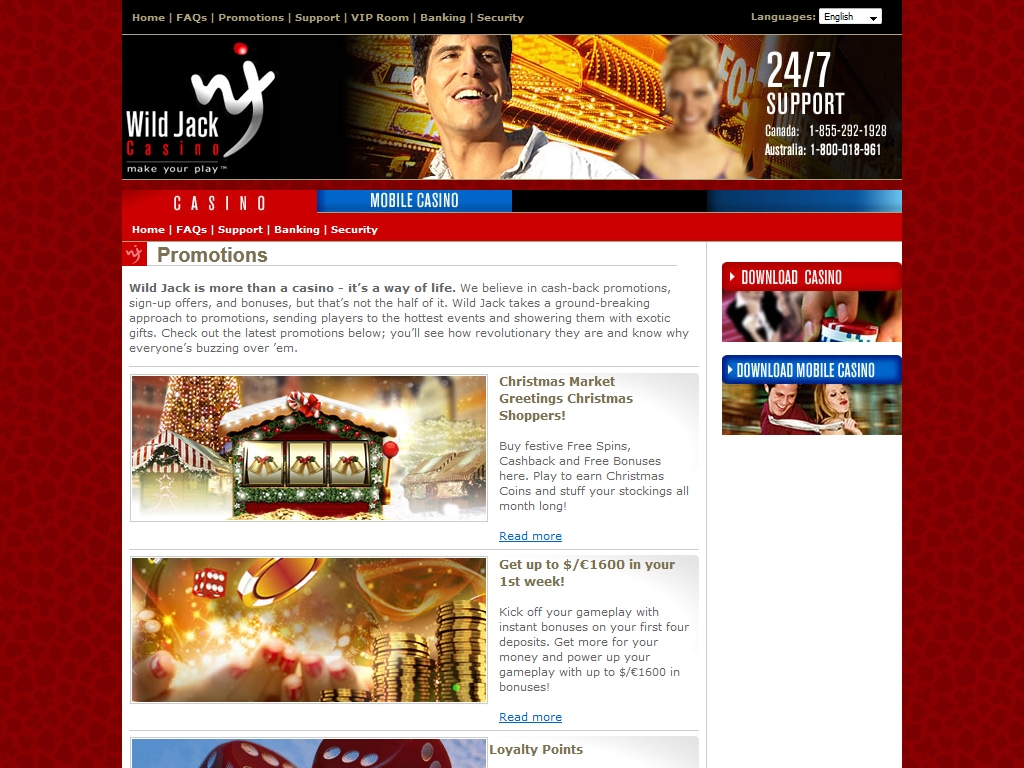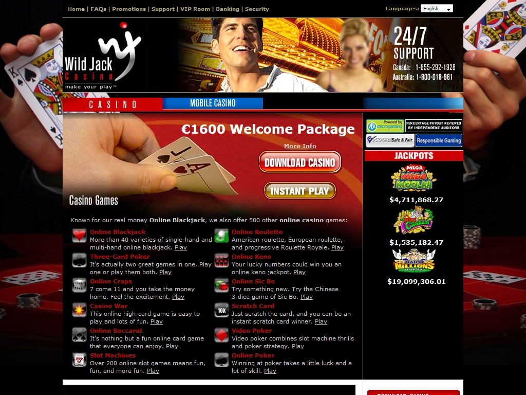 Рассматриваемый в статье игорный веб-портал функционирует на программном обеспечении Microgaming и предлагает клиентам разнообразные бонусы, чем способен заинтересовать многих пользователей. Подробнее о комплексе услуг, предоставляемых в Wild Jack, читайте далее.