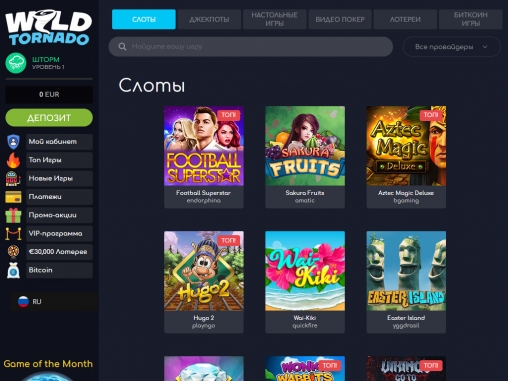В WildTornado представлены игры NetEnt, NYX, SoftSwiss, Betsot, Endorphina и многих других провайдеров.