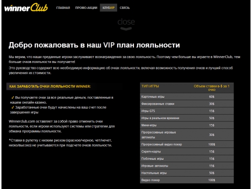 «Клуб Виннер» предлагает клиентам превосходный выбор поощрительных акций.