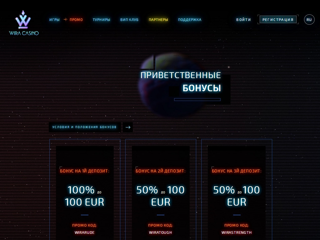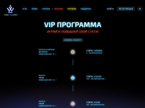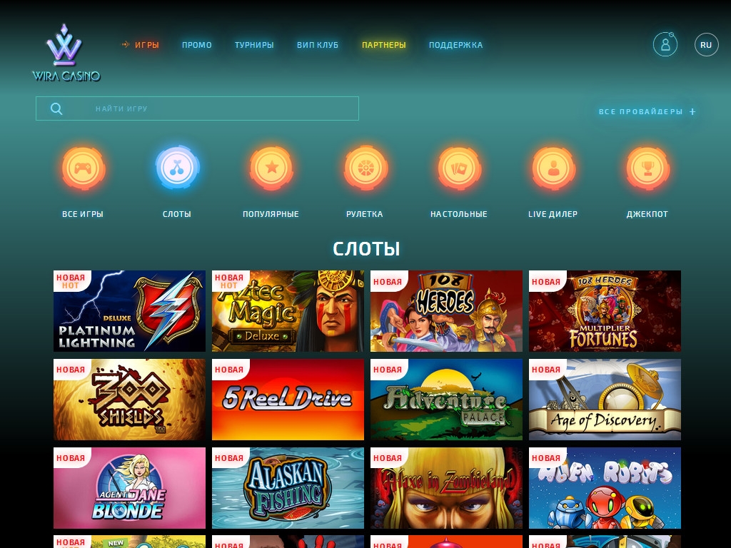 Запоминающийся дизайн, большой выбор моделей популярных брендов, приветственные бонусы для новых клиентов, разнообразные акции для постоянных игроков, увлекательные турниры, крупные джекпоты – таков перечень услуг интернет-казино Wira.