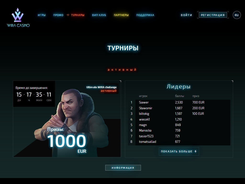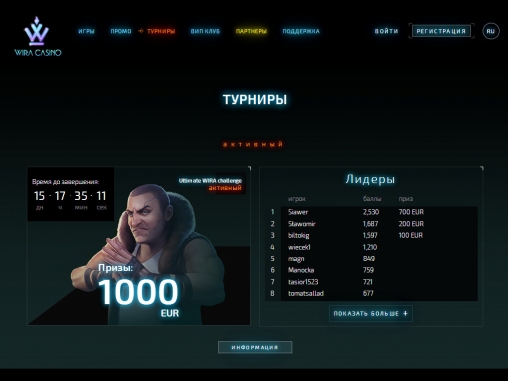 «Вира» проводит турниры между клиентами. Правила и расписание уточняйте на сайте.