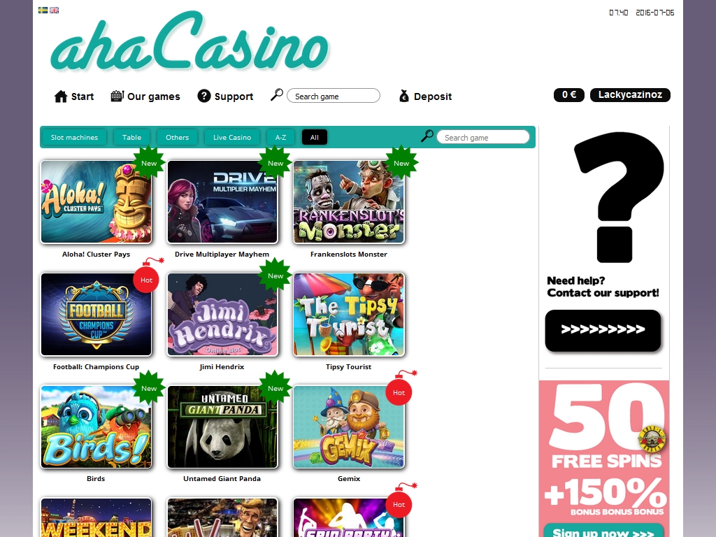 Когда наши обозреватели работали над обзором казино «Аха», здесь были доступны полторы сотни онлайн-игр от NetEnt, Microgaming, Betsoft и Play’N Go. Но ассортимент часто пополняется новинками, поэтому наверняка уже в ближайшем будущем моделей будет гораздо больше.