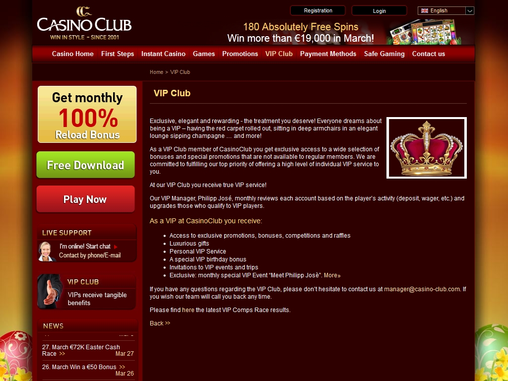 Поощрительную программу, действующую в казино Club, можно ставить в пример большинству других операторов интернет-гемблинга. Вкратце опишем основные предложения, распространяющиеся на новых и постоянных клиентов: