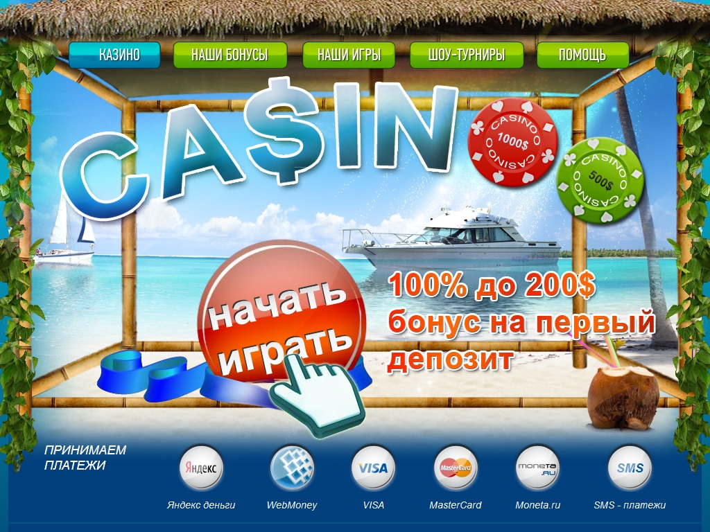 Открывая первую страницу, как бы окунаешься в бездну моря, которое на горизонте соединяется с небом. Перед глазами – белая яхта как символ роскоши и благополучия. На главной странице размещена вся информация, необходимая игроку для знакомства с условиями игры на портале Casinoo.
