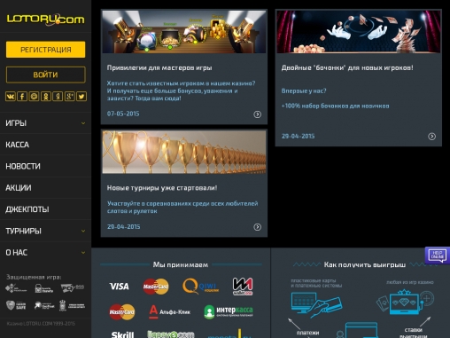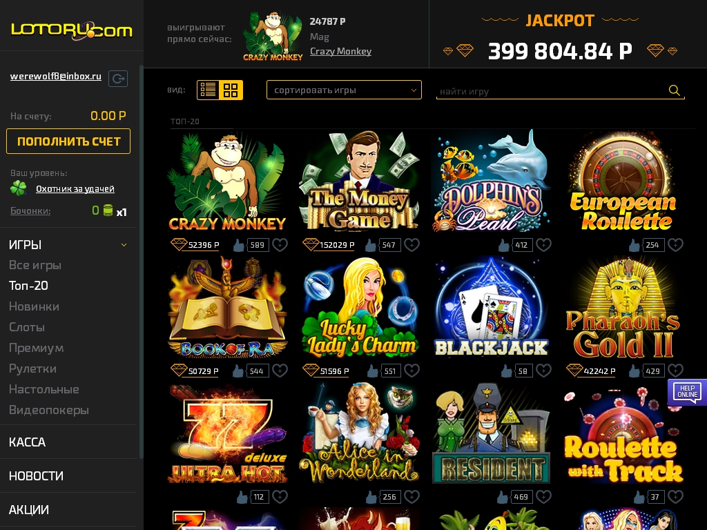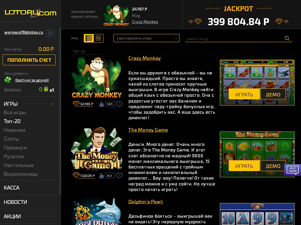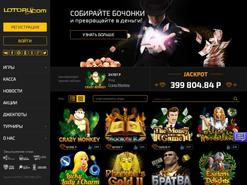 В последне время казино лотору перестало выплачивать деньги (жду уже небольшую сумму на выплату с 09 октября). так что будьте осторожны и несколько раз подумайте перед тем как начинать там играть. Раньше все выплачивали идеально, а теперь перестали.