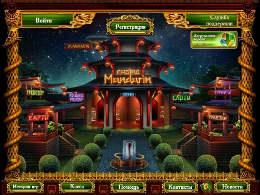 Лобби-панель казино Mandarin оформлена в восточном стиле. На переднем плане плещется вода в фонтане и расположены аккуратно подстриженные кусты оригинальных растений. Кроме того, имеются изображения домиков в японском стиле. Каждый из домиков – это вход в какую-либо из игр онлайн казино Мандарин. Посетитель имеет возможность перед началом игры ознакомиться с правилами и описаниями игр, которые даны на русском языке.