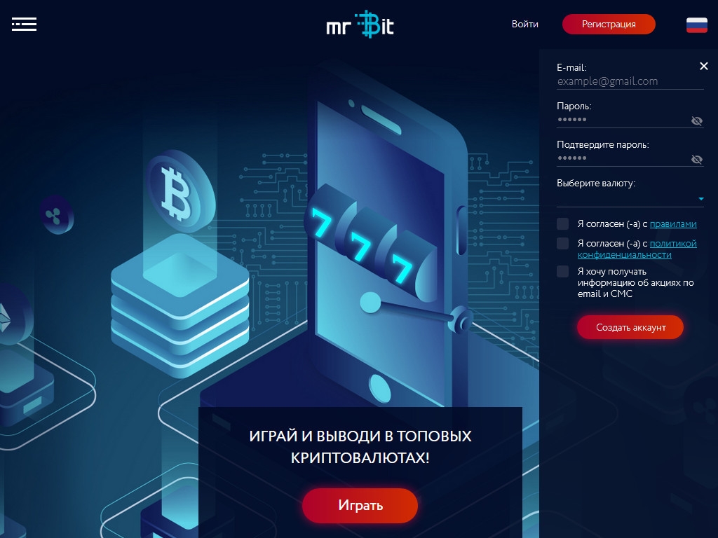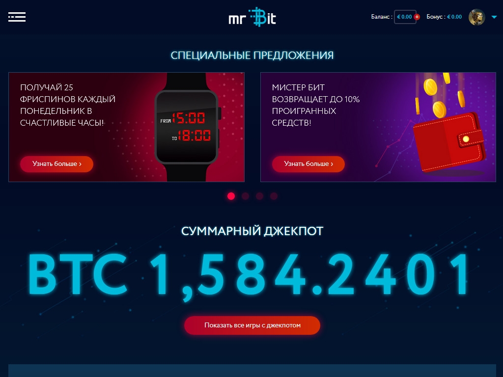 «Мистер Бит» принимает российские рубли, доллары США, евро и другие валюты. Также можно играть в казино на биткойны и другие виды крипто-валюты.