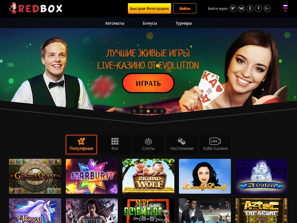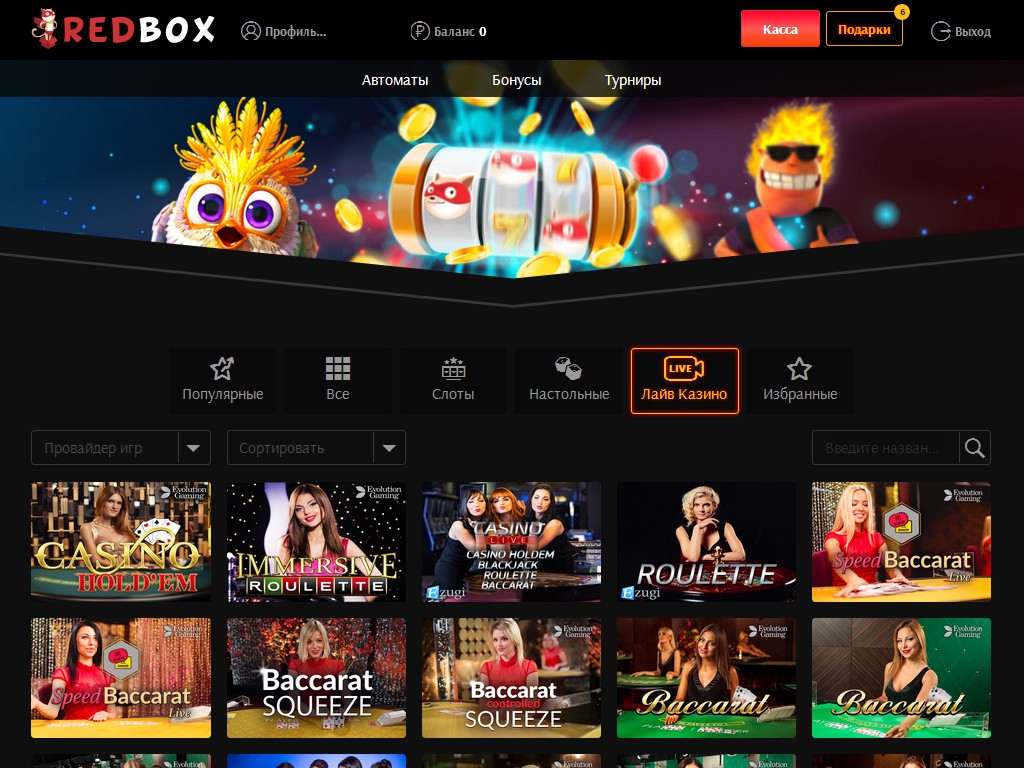 - Лайв-казино «Ред Бокс» - азартные развлечения с настоящими крупье.