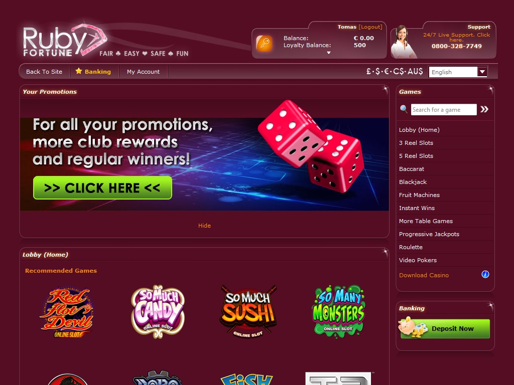 В качестве игровой валюты в Ruby Fortune Casino можно использовать фунты, евро и доллары США, Канады и Австралии. Депозиты принимаются большим количеством способов, в числе которых все основные банковские карты, PayPal, Ukash, Neteller, Skrill, ECO, ClickandBuy, EntroPay и другие. Многие из них разрешается использовать для вывода денег.