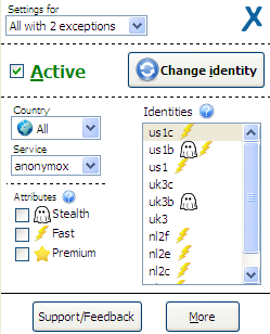 Если по нему кликнуть, то появится меню настроек AnonymoX:
