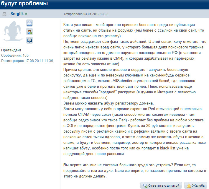 Человек не смог в дискуссии предоставить расширенную статистику о результатах своих покупателей, но очень обиделся на эту статью что начал шантажировать.