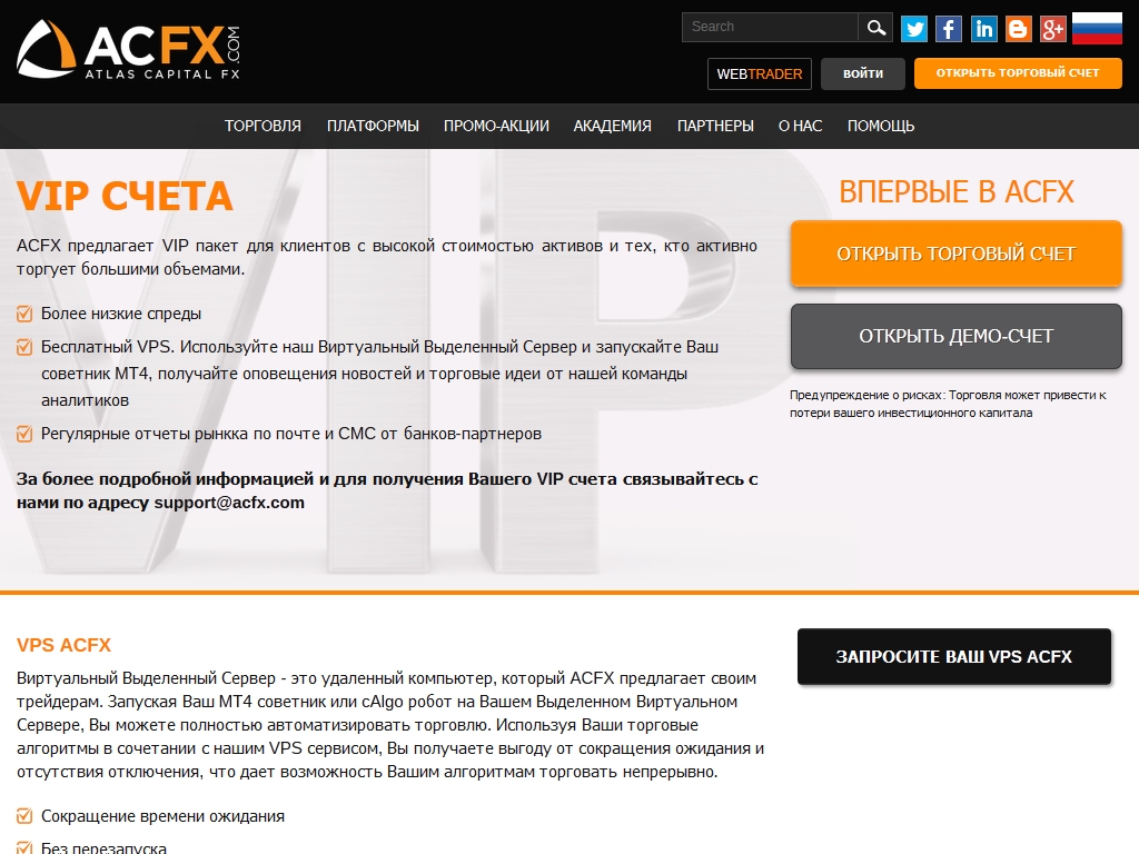 Торговый счет VIP: