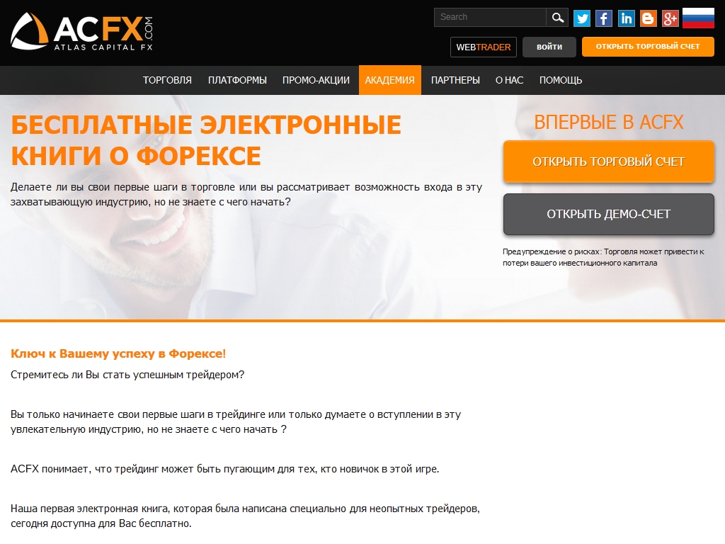 Компания ACFX дает возможность своим клиентам ознакомиться с учебными материалами по интернет-трейдингу, позволяющие получить базовые знания.