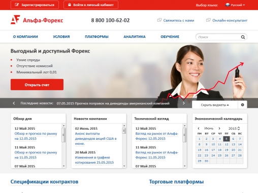 Альфа-Форекс является быстро развивающимся брокером, предоставляя качественные услуги на рынке Forex. Клиентам брокера предоставляются для торговли на валютном рынке популярные торговые платформы, в которых можно использовать для более прибыльной торговли форекс советники.