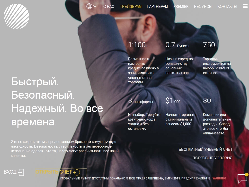 BMFN оказывает трейдерам высококачественные брокерские услуги, предоставляя доступ ко всем основным мировым финансовым рынкам. Так как брокер нацелен в первую очередь на опытных трейдеров, то минимальный депозит для открытия торгового счета равен 500 долларам. Для работы на финансовых рынках предоставляется более 100 торговых инструментов, которыми можно торговать, выбрав одну из нескольких торговых платформ.