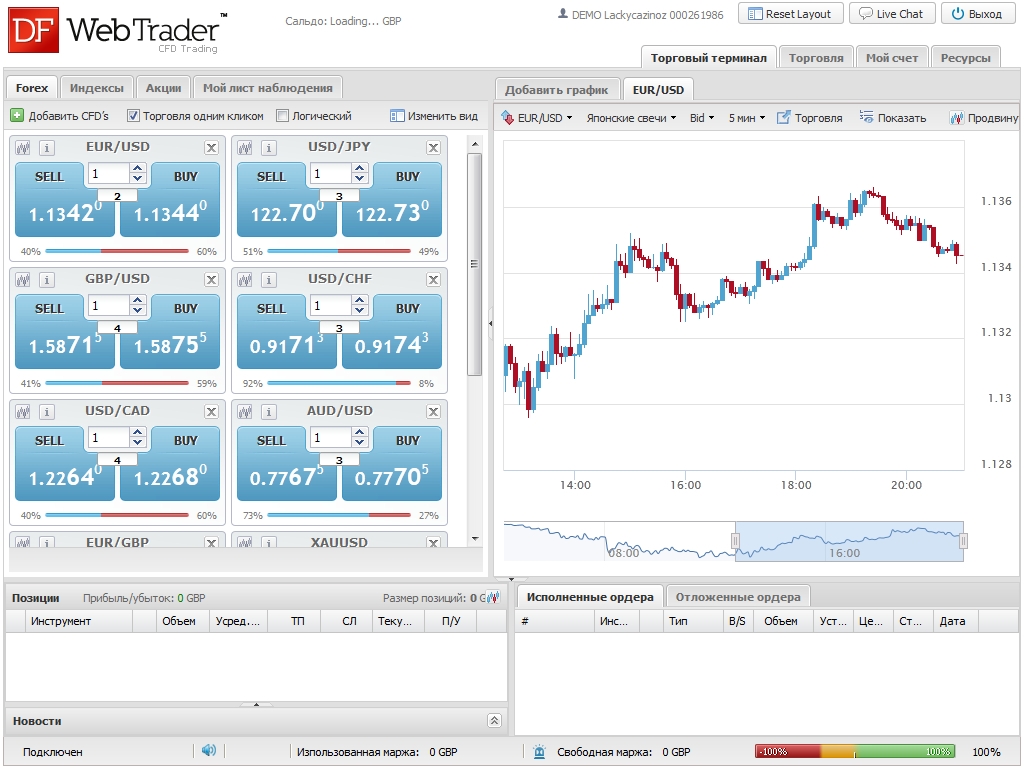 - аналог DFTrader, но позволяет торговать на мировых финансовых рынках без скачивания клиентской программы непосредственно через браузер.