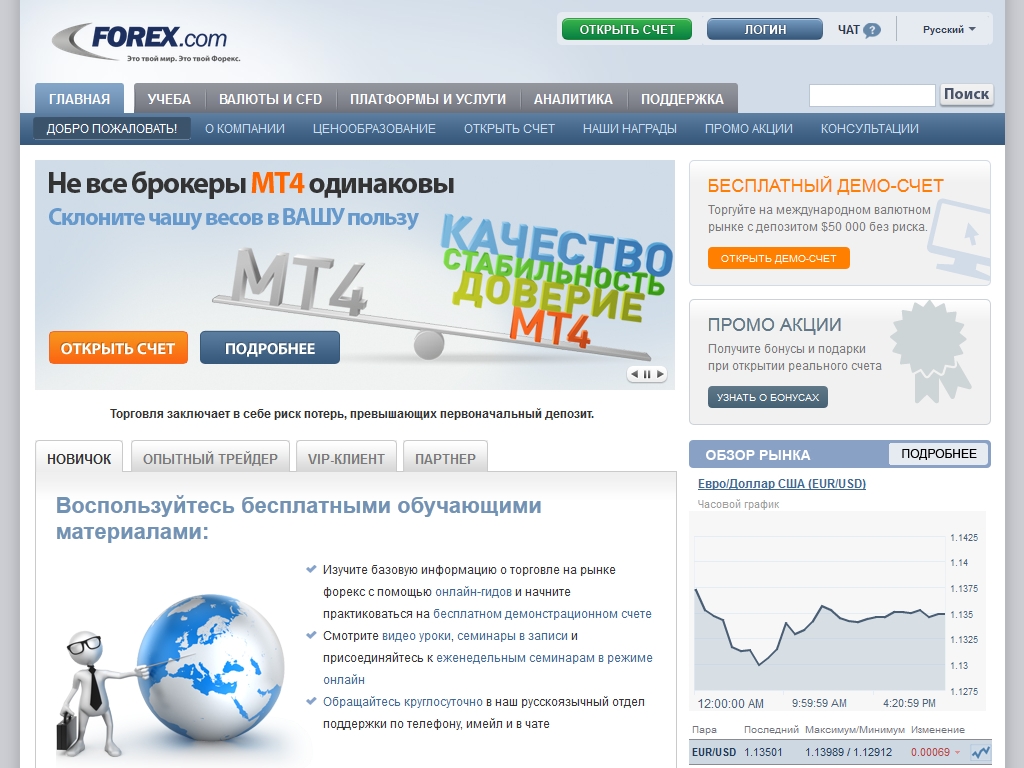 + популярный мировой форекс брокер
