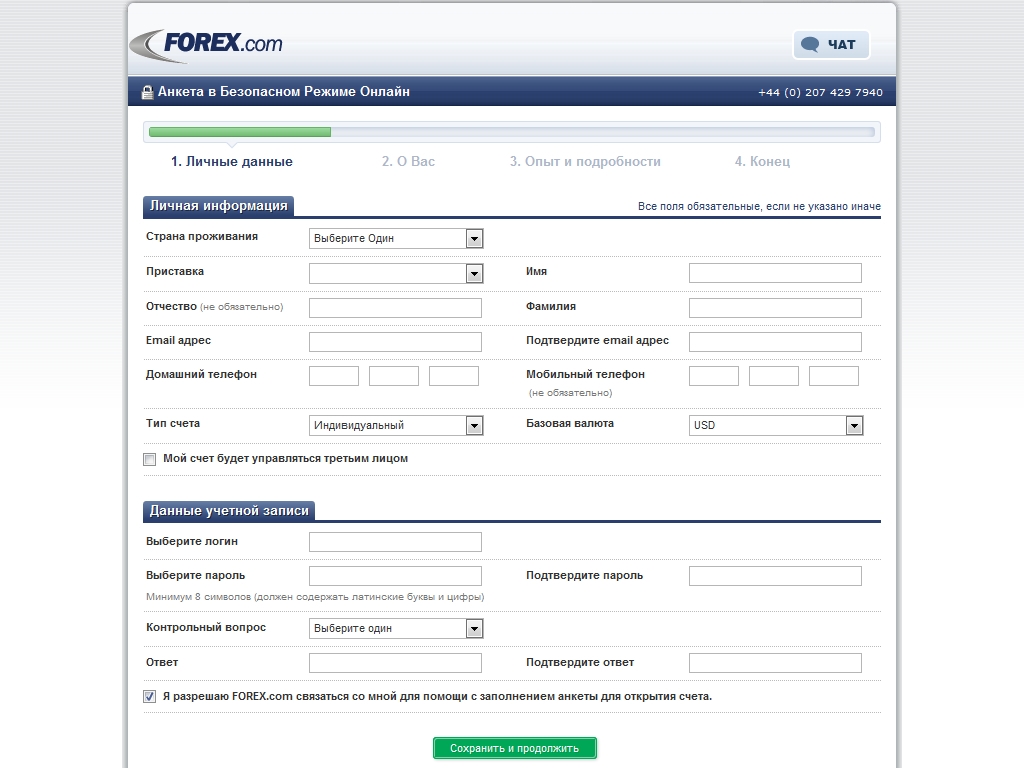 Регистрация в FOREX.com