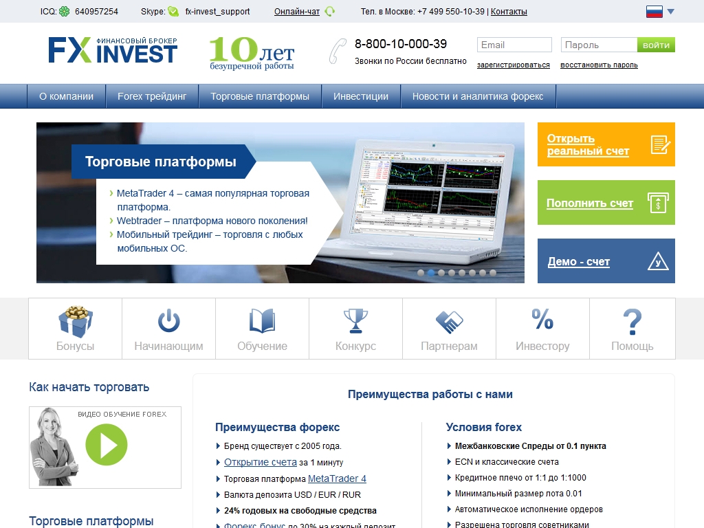 Компания FX-Invest была основана в 2005 году, основной целью которой стало оказание брокерских услуг трейдерам из разных стран мира.