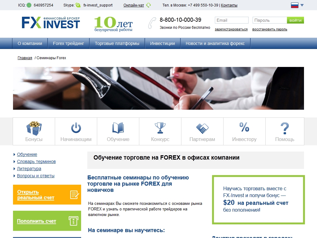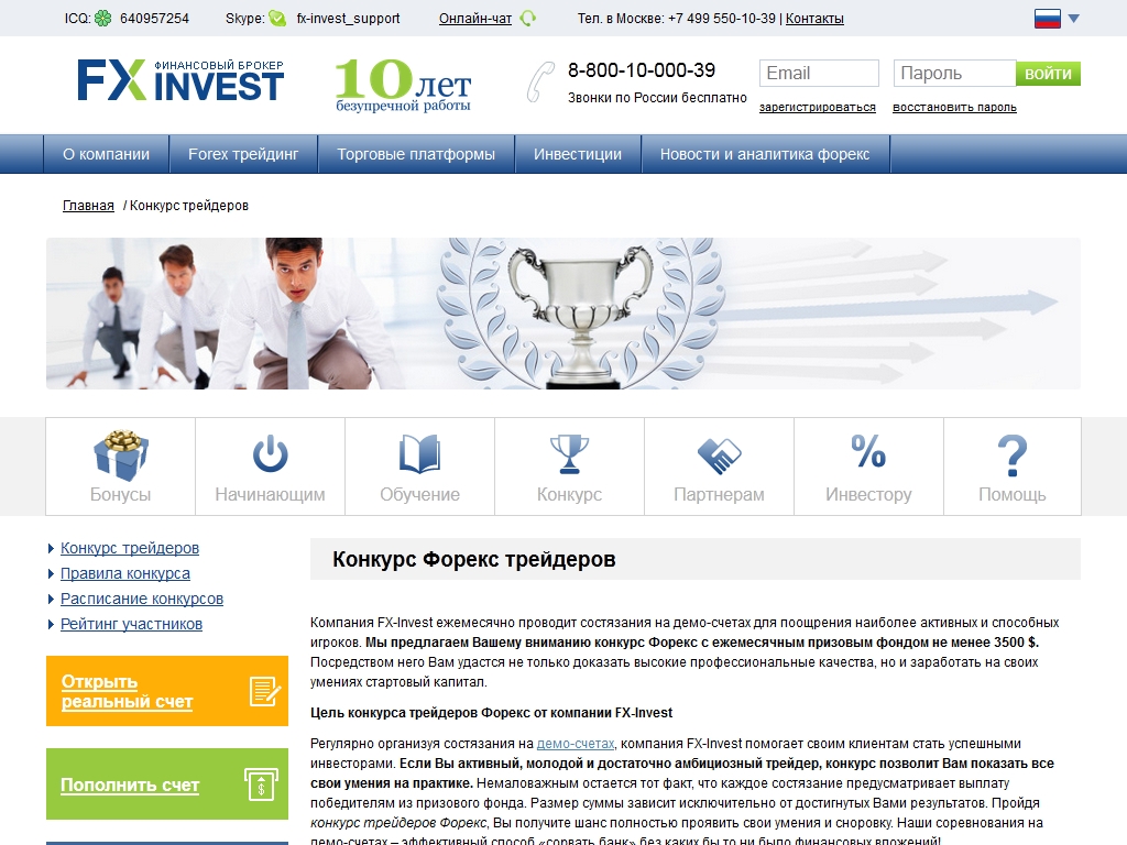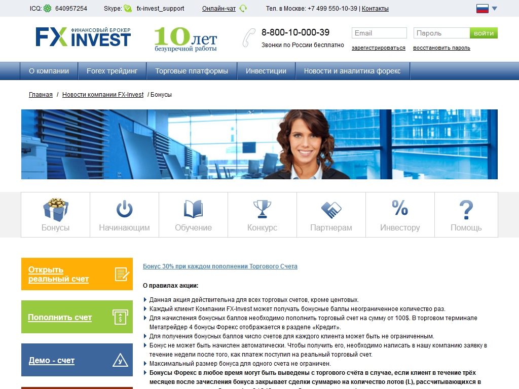 Компания FX-Invest проводит на своем официальном сайте разнообразные акции, участвуя в которых трейдеры могут получать привлекательные форекс бонусы.