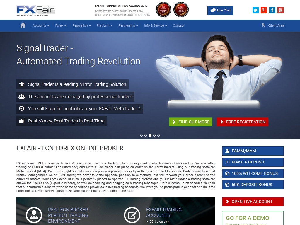 Компания FXFair вышла на рынок брокерских услуг в 2013 году, и уже в этом же году была удостоена почетных званий на Global Banking & Finance: «Best New ECN Broker South East Asia» и «Best STP Broker South East Asia».