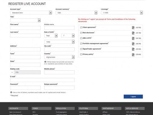 Регистрация в FXFair
