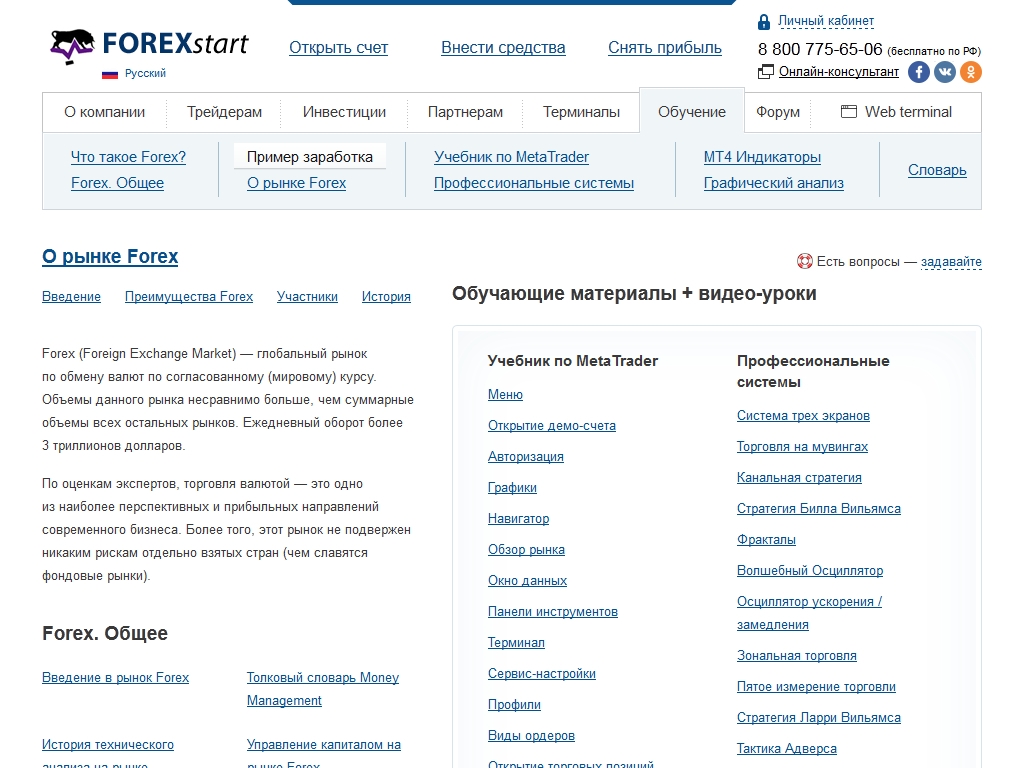 Форекс Старт собрал на своей площадке большое количество обучающих материалов, которыми может воспользоваться любой пользователь.