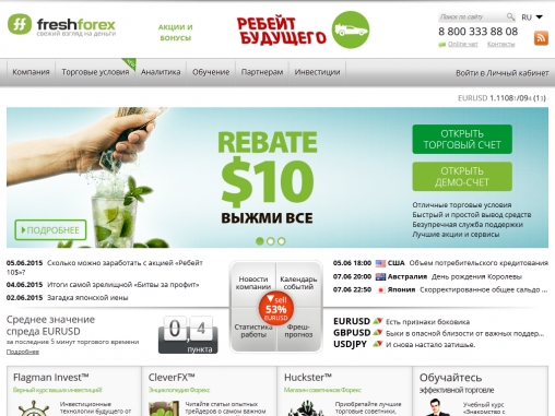 FreshForex был основан в 2004 году и за время своей работы смог вырваться на лидирующие позиции среди брокеров, предлагающих свои услуги по торговле на валютном рынке Форекс. ФрешФорекс постоянно совершенствует финансовые инструменты для работы на рынке Forex, и стремится предложить наиболее выгодные условия работы для трейдеров.