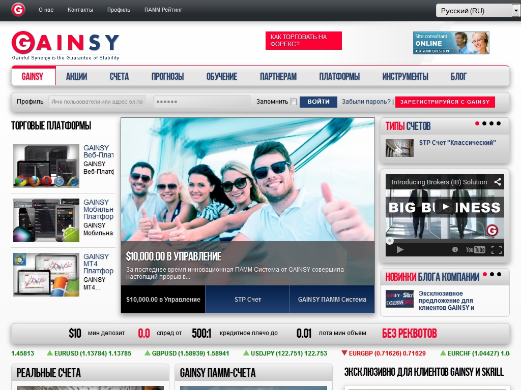 Форекс брокер GAINSY был создан в 2012 году командой профессионалов в сфере финансов, которые объединив усилия в 1998 году, тщательно изучали и анализировали мировые рынки, чтобы предложить своим клиентам одни из самых выгодных условий торговли на них.