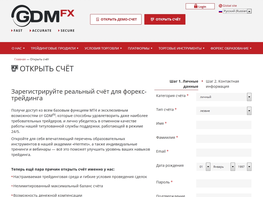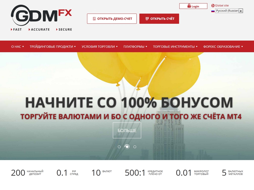Официальный сайт GDMFX представлен на нескольких иностранных языках: китайский, малазийский, английский, русский, индонезийский и турецкий.
