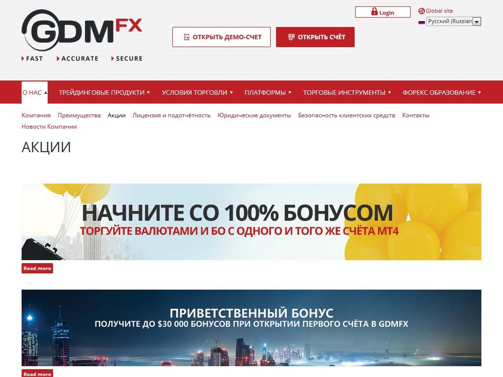 Также компания GDMFX выплачивает новым и постоянным клиентам форекс бонусы по двум акциям, которые она проводит регулярно.