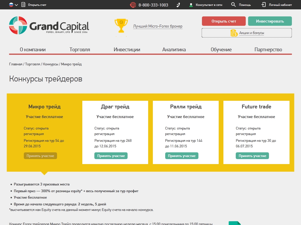 Конкурсы Grand Capital