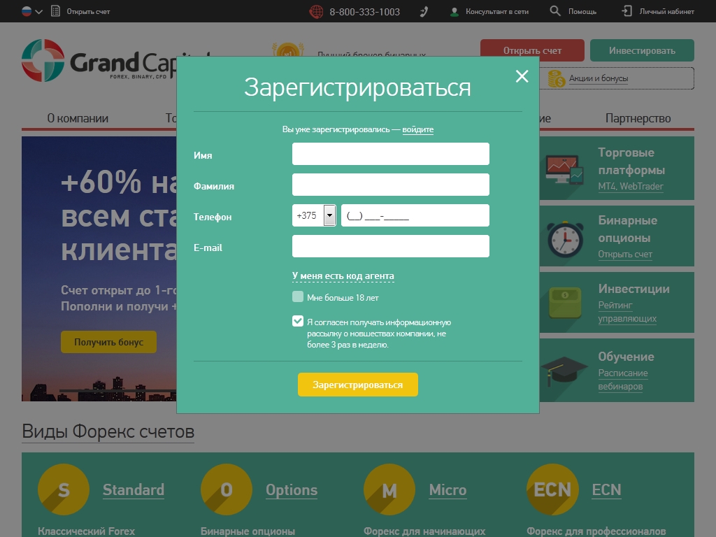 Регистрация в Grand Capital