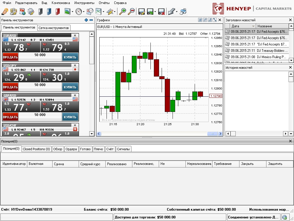 Клиенты HY Markets могут открыть на площадке брокера демщ-счет, который позволяет торговать на валютном рынке Форекс в режиме реального времени виртуальными деньгами, давая возможность, не рискуя денежными средствами освоить правила торгов, а также протестировать различные торговые форекс стратегии и торговые советники.