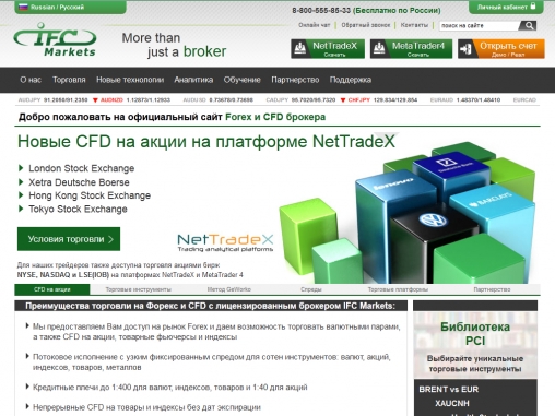 Своим клиентам IFC Markets предлагает торговлю на мировых финансовых рынках с помощью двух платформ: Meta Trader 4 и NetTradeX PC, являющуюся собственной разработкой компании.