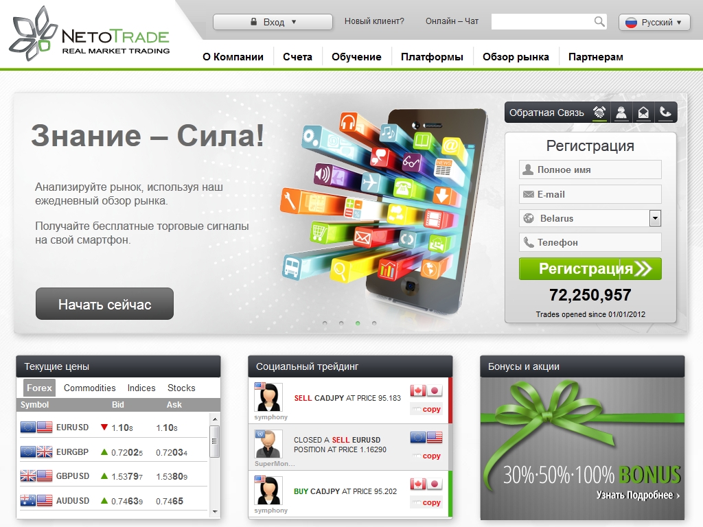 NetoTrade достаточно качественный брокер,с хорошими условиями торгов!Отличная бонусная программа!Направлена на поощрение своих клиентов!На сайте предоставлено большое количество обучающих материалов!Ввод и вывод средств осуществляется различными способами!