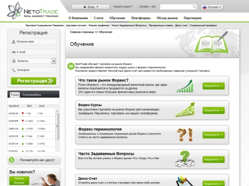 На официальном сайте NetoTrade размещены обучающие материалы, которые позволят начинающим трейдерам узнать, как торговать на мировых финансовых рынках, где международный валютный рынок стоит на приоритетном месте.