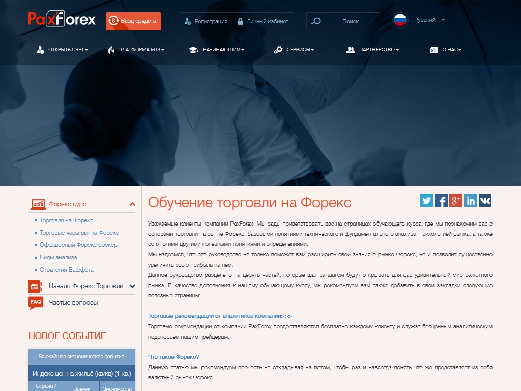 PaxForex специально для начинающих трейдеров разместил на своем сайте обучающие материалы по валютному рынку Forex, которые позволят получить базовые знания для начала торговли.