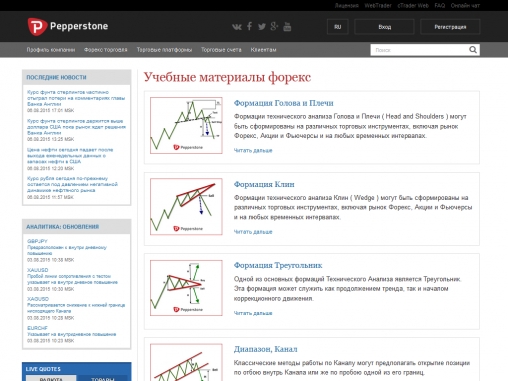 На официальном сайте Pepperstone представлено небольшое количество учебных материалов, и все они посвящены техническому анализу валютного рынка Форекс.