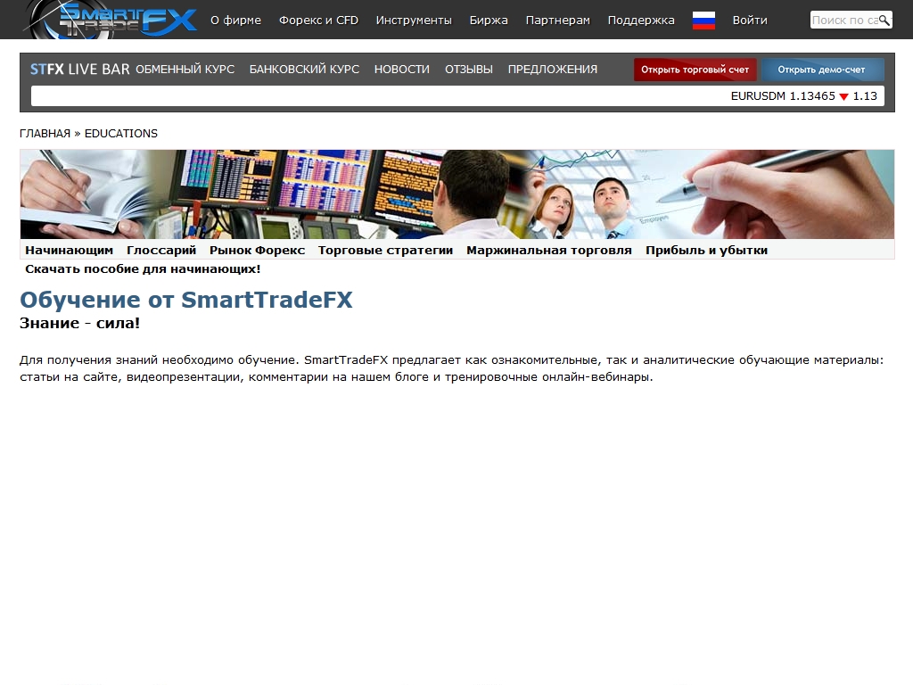 SmartTradeFX позволяет всем пользователям изучить обучающие материалы по торговле на международном валютном рынке Forex, которые опубликованы на его сайте.