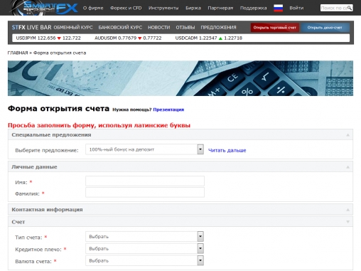 Регистрация в SmartTradeFX
