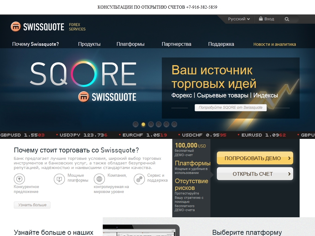+ официальный представляющий брокер швейцарского банка