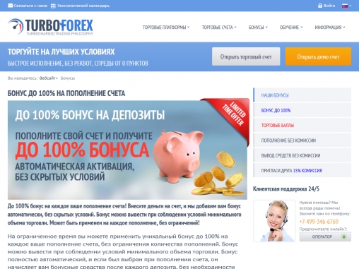 TurboForex радует своих клиентов разнообразными форекс бонусами, которые могут получить без исключения все трейдеры, выполнив несложные требования брокера.