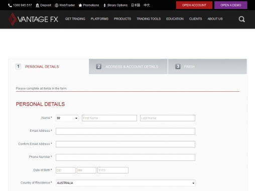 Регистрация в Vantage FX